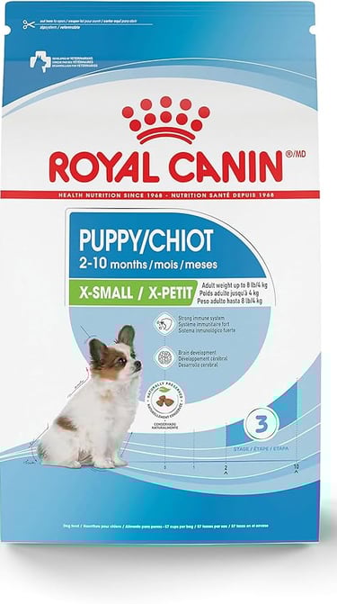 FORMULATED FOR EXTRA-SMALL BREED PUPPIES: Royal Canin X-Small Puppy Dog Food is tailor-made for puppies from 2 to 10 months old with an expected adult weight of no more than 8.8 lb
